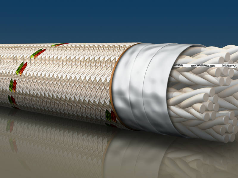 The design of this mooring rope consists of parallel laid yarns to construct the strands of the sub-rope cores which are also laid parallel within an outer braided jacket. Again, each sub-rope is of a long lay length 12 x 1 construction, which gives a 100% torque free rope.