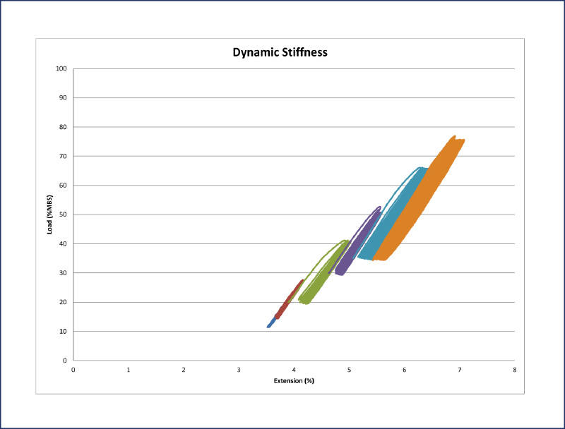Stiffness is normally divided into two categories: static stiffness and dynamic stiffness. Static stiffness is used to determine the extension of the rope from first order motions and calculate the offset of the vessel. Dynamic stiffness is used to calculate the peak loads in the mooring lines during second order motions of the vessel. CABRAL 512® is the stiffest rope construction currently available in the market for deepwater mooring applications. It requires less constructional extension due to bedding in and lower overall elastic extension resulting in smaller platform offsets and the option to utilise lower pre-tensioning during installation. In order to maximise the efficiency of the mooring system, Lankhorst recommends performing a stiffness test at an early stage. This stiffness test should incorporate static and dynamic loading scenarios and is performed on a sub-rope. Lankhorst can offer this service to our clients, please ask for further details.